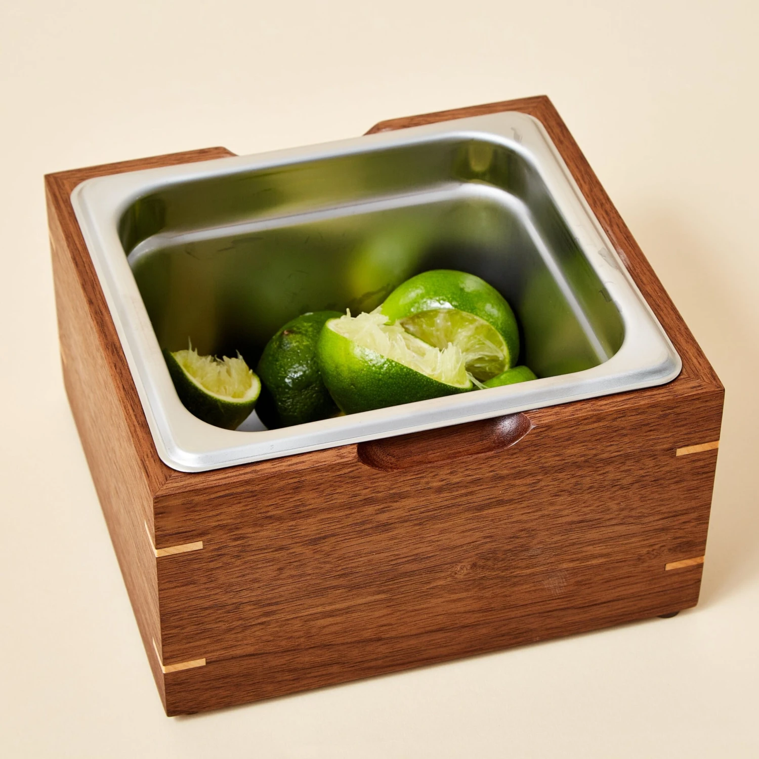 We finally found it: a deluxe composting bin that looks good and actually works. A handsome, sturdy black walnut hardwood base houses a stainless steel insert (complete with lid) that’ll hold kitchen scraps until you’re ready to add them to a larger or common composting setup. The compost bin is finished with thoughtful details, like rubber feet under the frame to protect surfaces; finger grooves under the steel insert for easier removal; corner reinforcements for extra durability; a lid that contains odors and hides kitchen scraps; and a water resistant finish that will protect the grain of the hardwood for years to come. The best part? The stainless steel insert lifts right out and can go in the dishwasher after use, so you can start fresh the next day. As each hand-crafted bin is made with locally sourced hardwood, the color and the grain of your wooden piece may vary slightly from what is pictured.