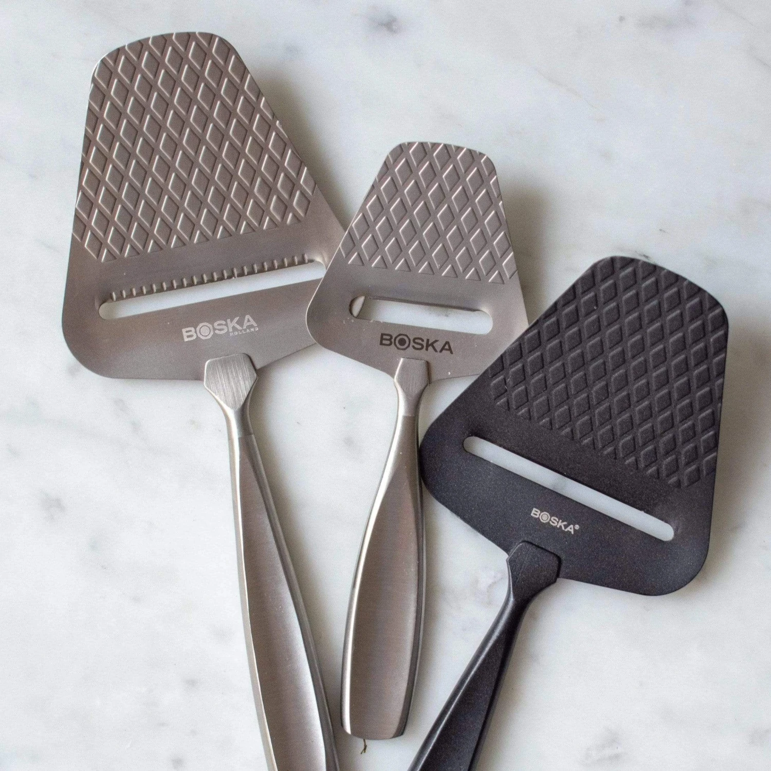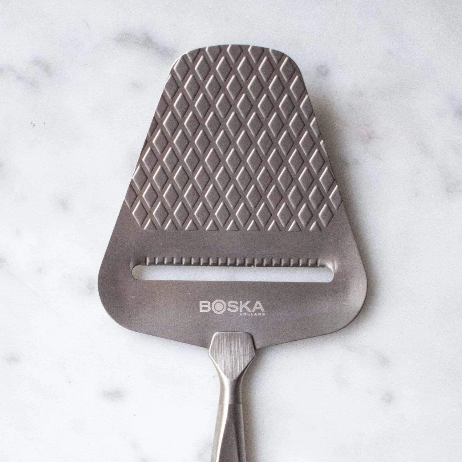 Serving cheese doesn’t get any easier than with the sleek, modern Monaco+ cheese slicer from award-winning Dutch company Boska, which has been making professional-grade cheese tools with superb designs for more than a century. Simply glide this cheese plane along a block of cheese for perfectly even slices. We love the wide cutting edge and the shape of the plane, which is not only stylish but also has enough surface area to hold generous portions. Thanks to Boska’s patented embossed quilted pattern on the slicer, it also has nonstick properties that make all the difference for getting a clean slice of cheese every time.. The stainless steel material has a fine edge with subtle ridges and is flexible so you don’t meet resistance with cheese—instead, slicing is effortless. And unlike cheese slicers that have flimsy wooden handles, these knives are sturdier and more comfortable in the hand as well as dishwasher-safe.