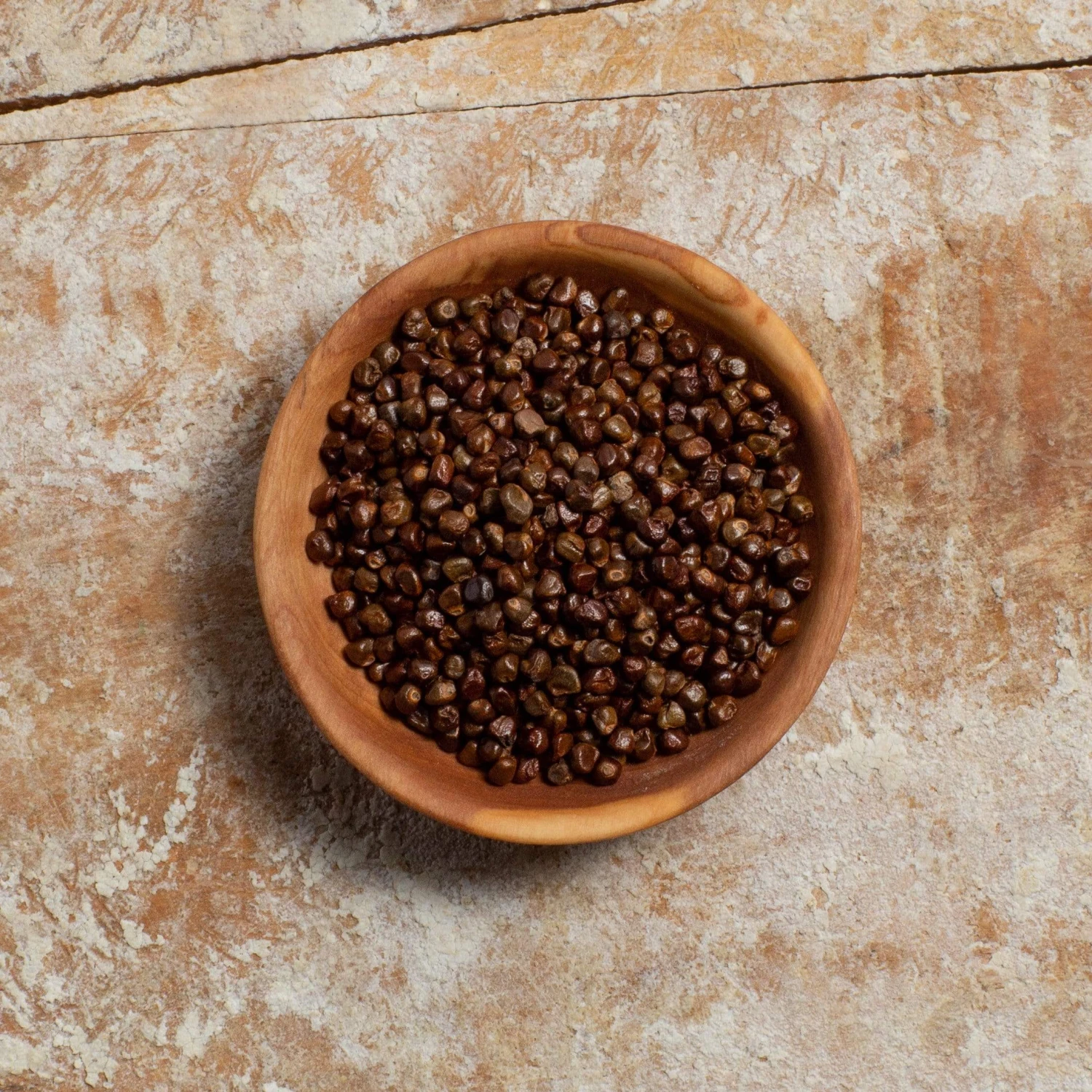 Known also in West Africa as Melegueta pepper, grains of paradise is a complexly flavorful spice widely popular across West Africa and Ethiopia. Each seed is about half the size of a black peppercorn, but packs double the flavor and fragrance. It has a numbing quality vs. the heat of black pepper, though there’s also a wonderfully fresh herbal quality and ginger-like warmth that’s almost reminiscent of cinnamon, nutmeg or cardamom (a close relative of the spice). A citrusy brightness adds even more layers of flavor. These grains of paradise are sourced from a cooperative of farms in Bench, Maji, Ethiopia.