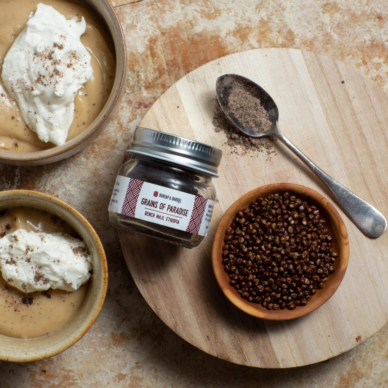 Place of Origin: Bench Maji, Ethiopia[/accordions-break]Co-founders Ethan Frisch and Ori Zohar began Burlap & Barrel—one of the U.S.‘s pioneering single-origin spice companies—in 2017 after coming across wild cumin in the remote mountains of Afghanistan.[/banner_heading]Now the company partners with small farmers from Turkey to Tanzania to source ingredients that range from mint grown on the Euphrates River to cinnamon from Zanzibar. These smallholder farmers cultivate their crops using traditional techniques, often ones passed down from the generations before them.[/banner-text-break]At its simplest, it’s a wonderful way to enhance your typical black pepper: Toss a few grains into your grinder and enjoy a much more layered way to season. Add whole or ground to stews and sauces. A pinch will bring out the sweetness and add a complex kick to baked goods—especially in banana bread or ones with warming spices like cinnamon and nutmeg. You can also grind it and blend with chili, turmeric, cumin and paprika for a homemade Ethiopian berbere spice blend. [/how-to-use-break]We especially love it in this Butterscotch Pudding recipe: