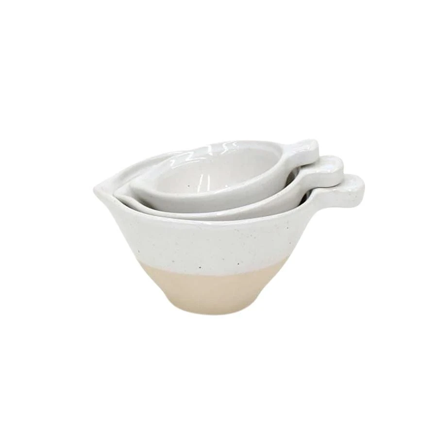 Handcrafted in Portugal with local all-natural materials, this set of three beautiful measuring cups aren’t merely functional. The white speckled glaze and unique, timeless design complement any kitchen decor and make them attractive enough to leave out stacked on the shelf. Each of the three cups (1 cup, ½ cup, ⅓ cup) have a small handle and spout to help with pouring measured ingredients, and their durable construction means they can go easily from oven to microwave to freezer and dishwasher.