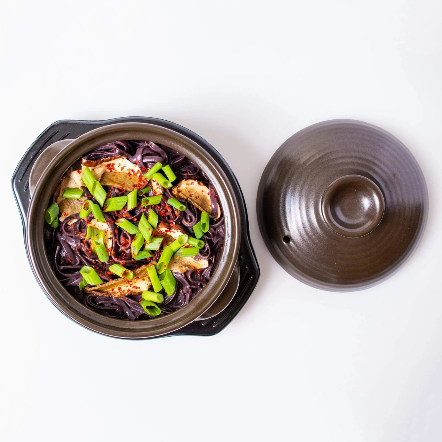 This traditional earthenware bowl (or ddukbaegi) is incredibly multifunctional, used in Korean cooking for simmering stews or making dolsot bibimbap, a popular sizzling rice dish. Safe for stovetop, microwave and oven use, the cookware is made from fine, porous clay that retains heat well but doesn’t absorb soaps, chemicals or any off-flavors—plus, it doesn’t require seasoning before first use. Korean stoneware has such excellent heat retention that the bowl is actually meant to double as a serving dish, since it keeps food warm as you’re eating. A matching lid and heat-insulating trivet with handles make for easy transport to the table, while the double-fired glaze looks sleek and elegant.