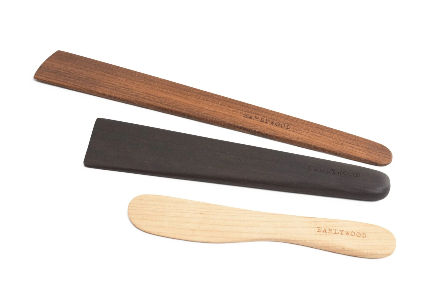 Why donât home cooks use wooden scrapers for cooking more than wooden spoons? A scraper has a wide flat edge that is perfect for, thatâs right, scraping the bottom of a pot or skillet. The problem with most scrapers is the wood deteriorates over time, damaged by repeated washings and use. Thatâs why we love this set. The long flat-edge scraper is made from Brazilian cherry, which is so strong and durable that itâs often used for tool handles and even railroad ties. The smaller scraper is fashioned from Mexican ebony, one of the hardest woods in the world that is, for all intents and purposes, waterproof. Finally, the spreader is made from hard maple (hard enough to be used for bowling alleys) and big enough for a big schmear of cream cheese or softened butter.