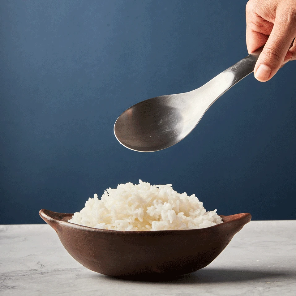 This Japanese-designed serving spoon is compactly sized and made of high-grade stainless steel. The handle features a brilliant detail on the end: a down-turned lip that can hang on to the rims of bowls or containers, keeping the spoon from slipping in.