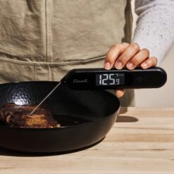 Escali’s DH7 Infrared Thermometer is one of the best dual-purpose thermometers we’ve tested, with an ergonomic design and extra-long probe for quicker, more accurate measurements. Developed to switch seamlessly between infrared and probe mode, it can take surface temperatures up to 700℉ degrees Fahrenheit and measure internal temperatures up to 570℉. The infrared is perfect for gauging the heat of a grill or getting an accurate read on oil, and the probe helps cook anything from meat to caramel with restaurant-level precision.