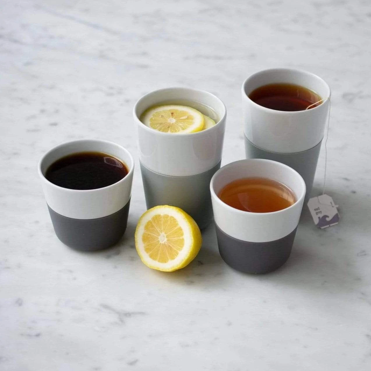 [/description-break]Specifications [/title] Capacity: 360 milliliters Material: Porcelain, silicone [/accordion] CARE AND USE [/title] Care: Dishwasher-safe, however you must remove the rubber casing. Hand-washing is recommended and easier! [/accordions-break]Eva Solo Cafe Latte Tumblers – Set Of 2