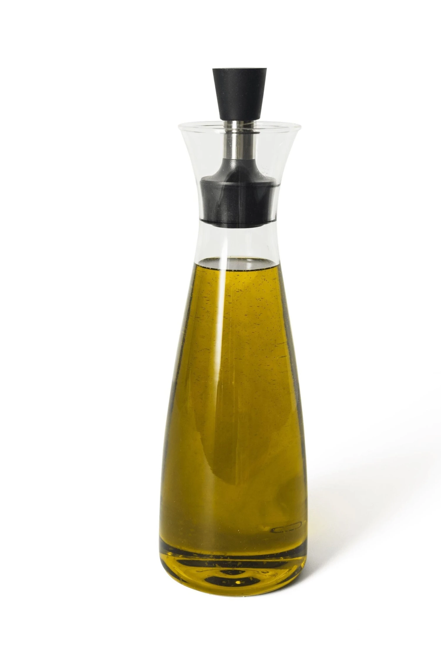 This nearly sculptural, sturdy half-liter glass carafe is ideal for storing vinegars, oils, or big batches of dressings and vinaigrettes. The air-tight silicone spout pours smoothly and drip free—and easily pops out for thorough cleaning. Use it stove-side for precise oil disbursement or passed at the table.