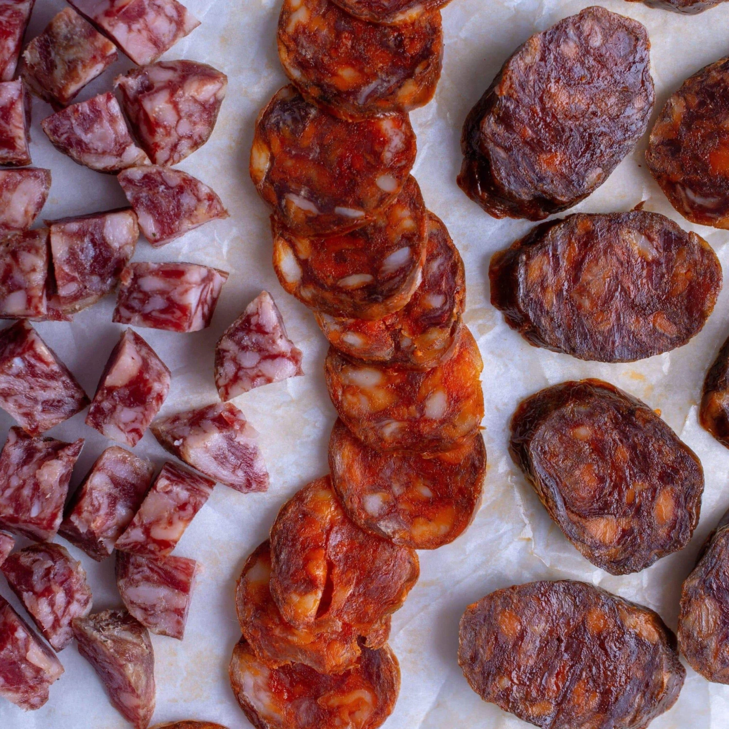 Most people only know Ibérico pork for jamón ibérico, the ultra-luxe Spanish cured ham, but the melt-in-your-mouth meat tastes delicious in any form. For the highest-quality Ibérico products, we trust family company Fermín, which is based in Salamanca, Spain, and was the first authorized exporter of Ibérico products to the United States. We love that these dry-cured sausages are coarsely ground for a meatier texture and to emphasize their marbled appearance. Thinly sliced, they taste tender and rich, with the naturally nutty and sweet flavors that Ibérico pork is prized for. This set of 3 includes warm, peppery Mild Chorizo made with sweet paprika and balanced by garlic and oregano; smoky Spicy Chorizo with hot paprika, cumin and a nutty boost from nutmeg; and Salchichón, a Spanish equivalent of salami that is minimally spiced to highlight its robust meaty flavor. As an added bonus, Fermín only uses pure salt to cure its chorizo, for a cleaner flavor than other brands made with nitrates.