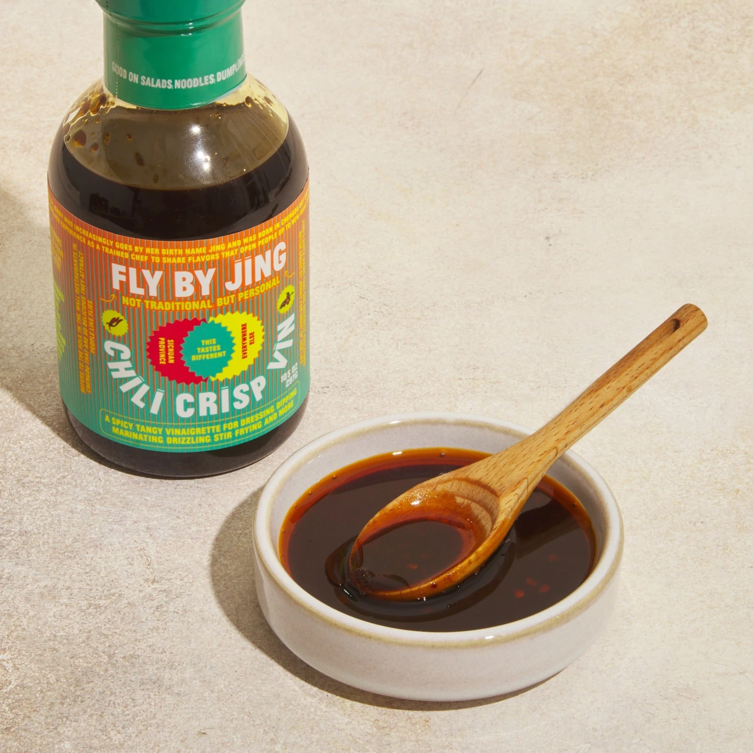 Fly By Jing makes one of our favorite chili crisps, so when we heard they were making a vinaigrette featuring their signature Sichuan topping packed with umami-forward pantry staples, we knew it was going to be good—but this flavor bomb surpassed our expectations. Perfect for drizzling, tossing or dipping, this vinaigrette pairs 10-year-aged black vinegar, premium soy sauce and a touch of nutty sesame oil with their classic bold, garlicky chili crisp. Full of balanced heat, hints of sweetness and just the right amount of acidity, this ready to use flavor booster saves time and energy in the kitchen. Use as a dipping sauce or add to rice bowls, salmon, salads, noodles, fried or roasted chicken, dumplings or anything else you may put soy sauce on.