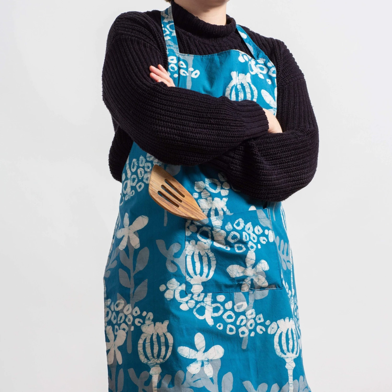 Founded in 2003 by six Ghanian women, Global Mamas is a nonprofit organization aimed at helping African women grow their businesses as artisans. This beautiful apron combines a batik patchwork design on one side and an upcycled flour sack on the other, all hand-sewn and personally signed by seamstresses in Prampram, Ghana. Besides being a durable apron in the kitchen, we love the new life these aprons give to upcycled materials, all while supporting African women and their businesses.