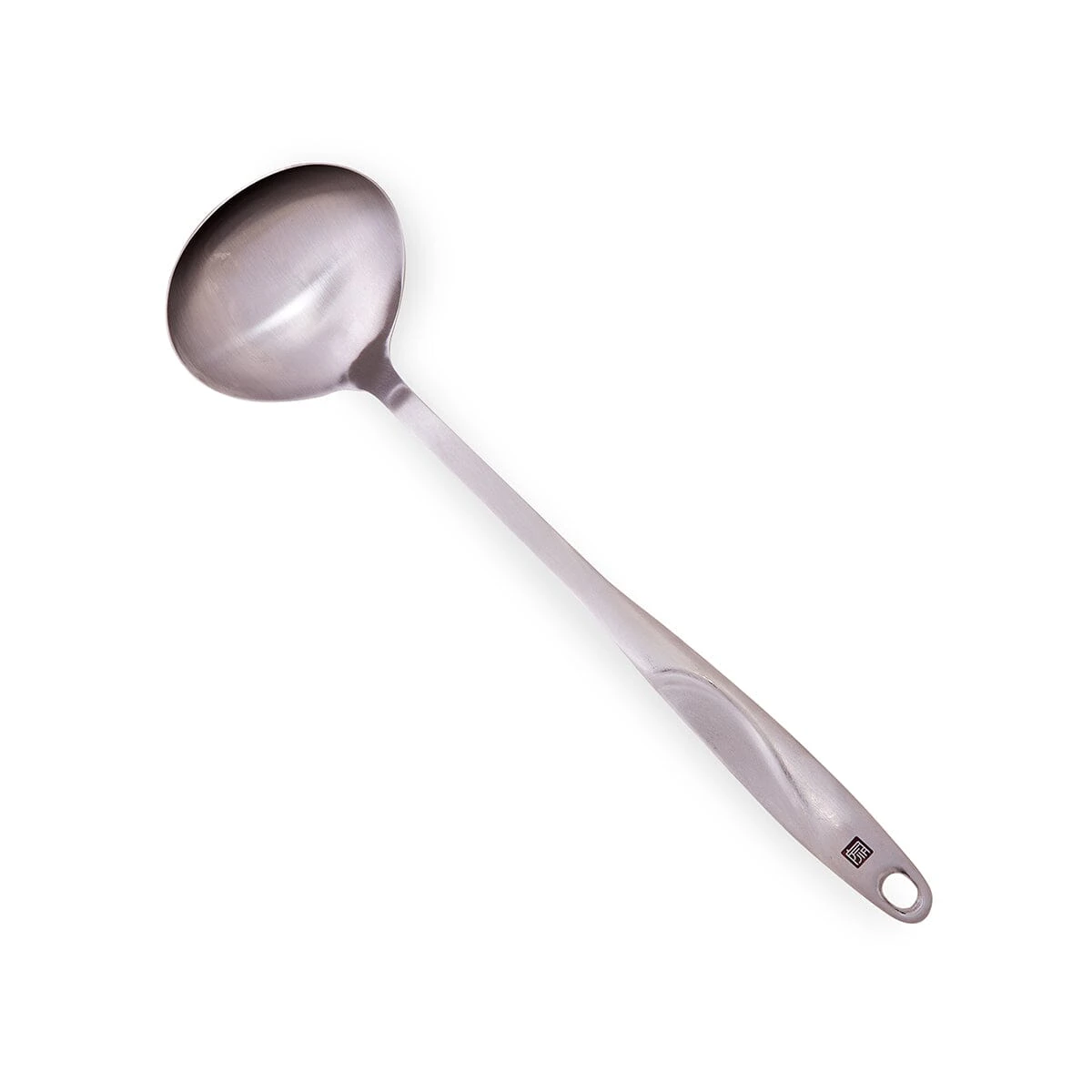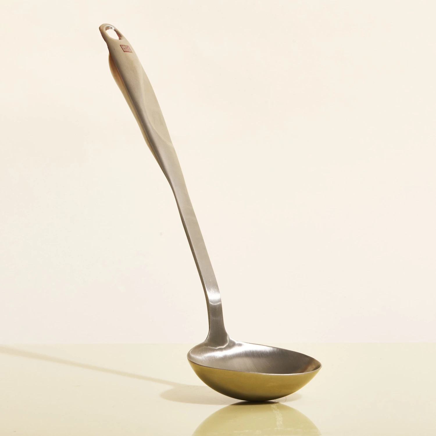 The perfect companion to our Milk Street Hammered Carbon Steel Wok, JIA’s Wok Ladle is made from sturdy stainless steel to stir, scoop, mix and serve with ease. It’s lightweight in the hand by design and just the right length, allowing for precision while keeping your hands away from the wok’s direct heat. Use it while cooking fried rice, soups, stews and stir-fries, and then for serving your dishes once at the table. Plus, the integrated hanging hook helps make for simple storage.