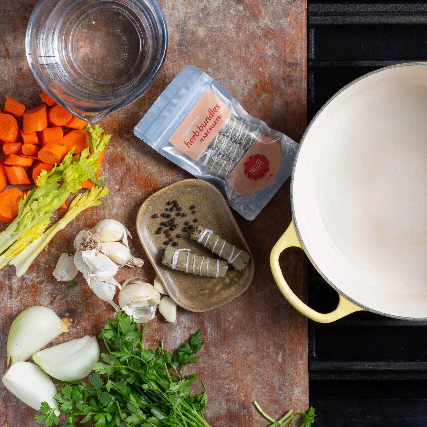 Place of Origin: Spain [/accordions-break] A Spanish take on a French classic. β [/banner_heading] Farcellet is a bundle in Catalan. These bundles are a Spanish/Catalan version of a French Bouquet Garni which is a bundle of herbs tied with a string and added to soups, stews, and stocks.[/banner-text-break] Place in the cavity of a bird before roasting, cook with any dried bean or heat with the liquid when making stock. Soak and put beside the coals for aromatic barbecue or add in braising liquid when slow cooking a roast. The bundle goes perfectly in coq au vin, daube ProvenΓ§al, Spanish fish stew and in a marinade for flank steak. [/how-to-use-break]  .