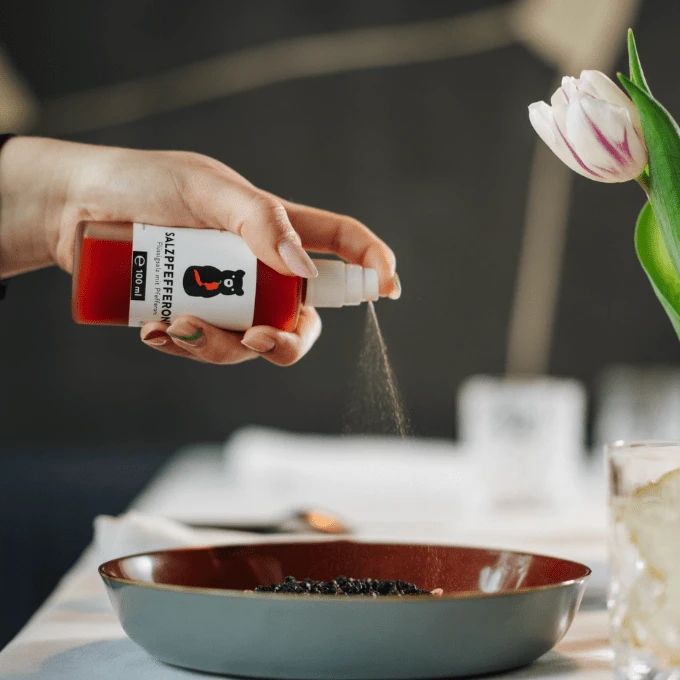 Place of Origin: Austria [/accordions-break] Try this salt spray anywhere you want a little extra salt and seasoning. We like it for seasoning roasted vegetables or meat; spraying on to hot and cold noodle dishes; or adding to dips or soy sauce. Spray it on sandwiches or quesadillas or use in place of hot sauce, especially for dry wings. All of Kleiner Bär’s flavors are excellent for misting on fried food. The pepper salt spray works great on seafood, everything from sushi, shrimp cocktail and the raw bar to fried New England seafood, fish and chips and roasted fish. It’s also excellent on comfort food and chicken dishes, like fried or roast chicken and mashed potatoes. Try a spritz on tacos, eggs, bruschetta, caprese salads, beef tartare or burrata. Add a spray to potato chips and popcorn. [/how-to-use-break] Refrigeration not required after opening.