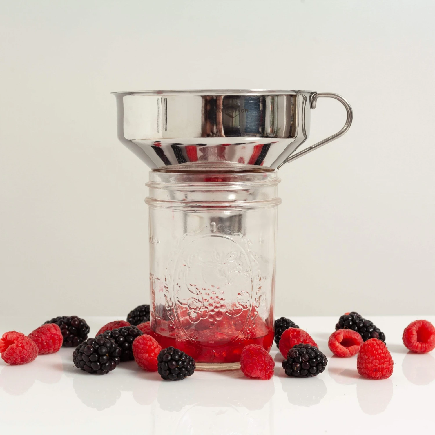 Materials: Stainless Steel[/accordion] Care and Use [/title] Care: Dishwasher safe; removable funnel. [/accordions-break]We love using this for jams, custard, syrups and stocks. [/how-to-use-break]Dishwasher safe; removable funnel.