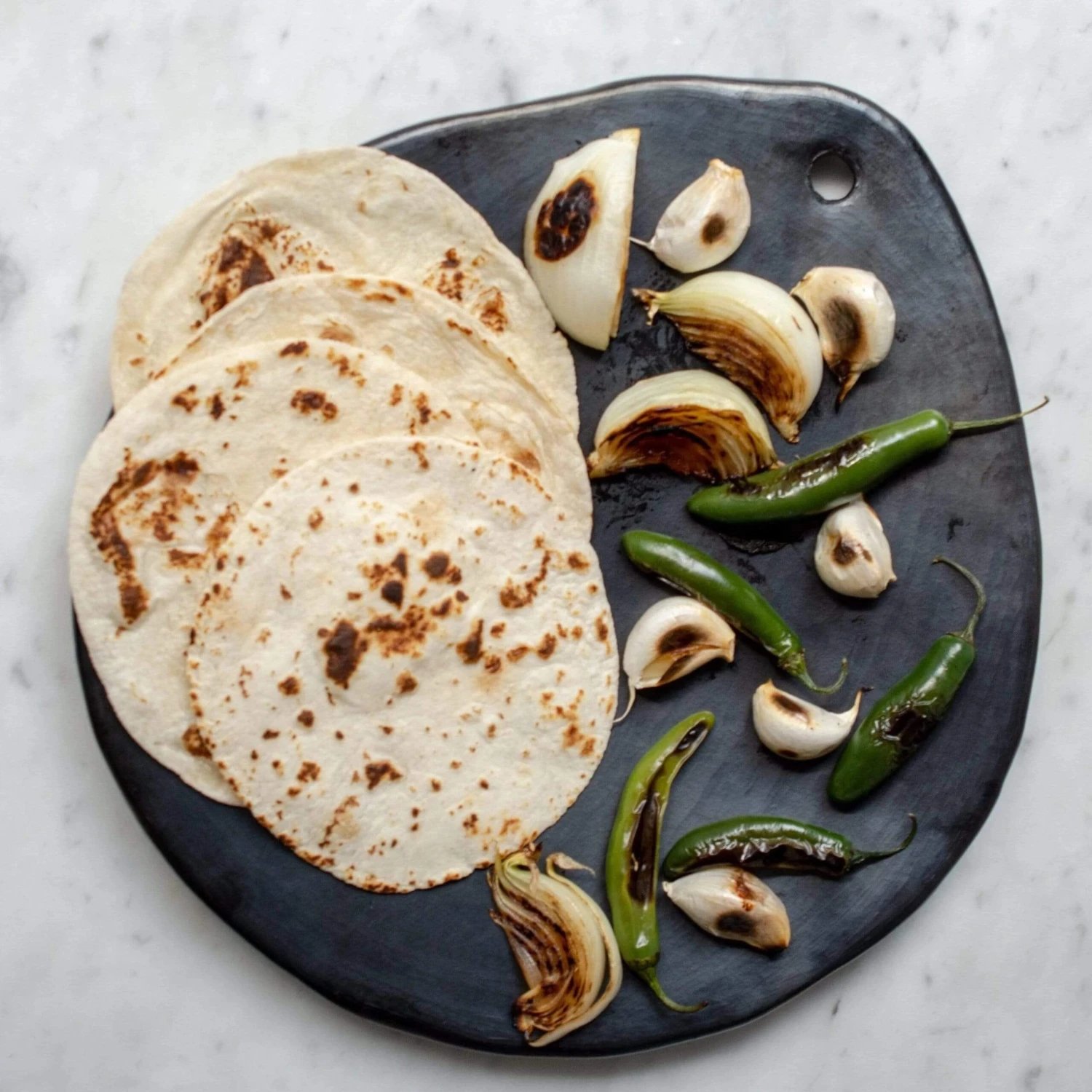 [/description-break]Specifications [/title]Dimensions: 12 x 12 x 1.5 inchesNote: Due to their handmade nature, the pieces may have slight imperfections in the form or finish of the materials.[/accordion] CARE AND USE [/title]Hand wash. After each use, fill with warm, soapy water, allowing to soak briefly if heavily soiled, then scrubbing lightly with a sponge or soft cloth. Pieces should not be exposed to extreme temperature shock. Rinsing under cold water, for instance, may cause it to crack. [/accordions-break] Use the La Chamba comal to char vegetables for our Oaxacan Green Mole with Chicken. [/banner_heading]Making La Chamba cookware is quite literally a community effort, and every piece passes through the hands of various skilled artisans in one village in Colombia. [/banner-text-break]