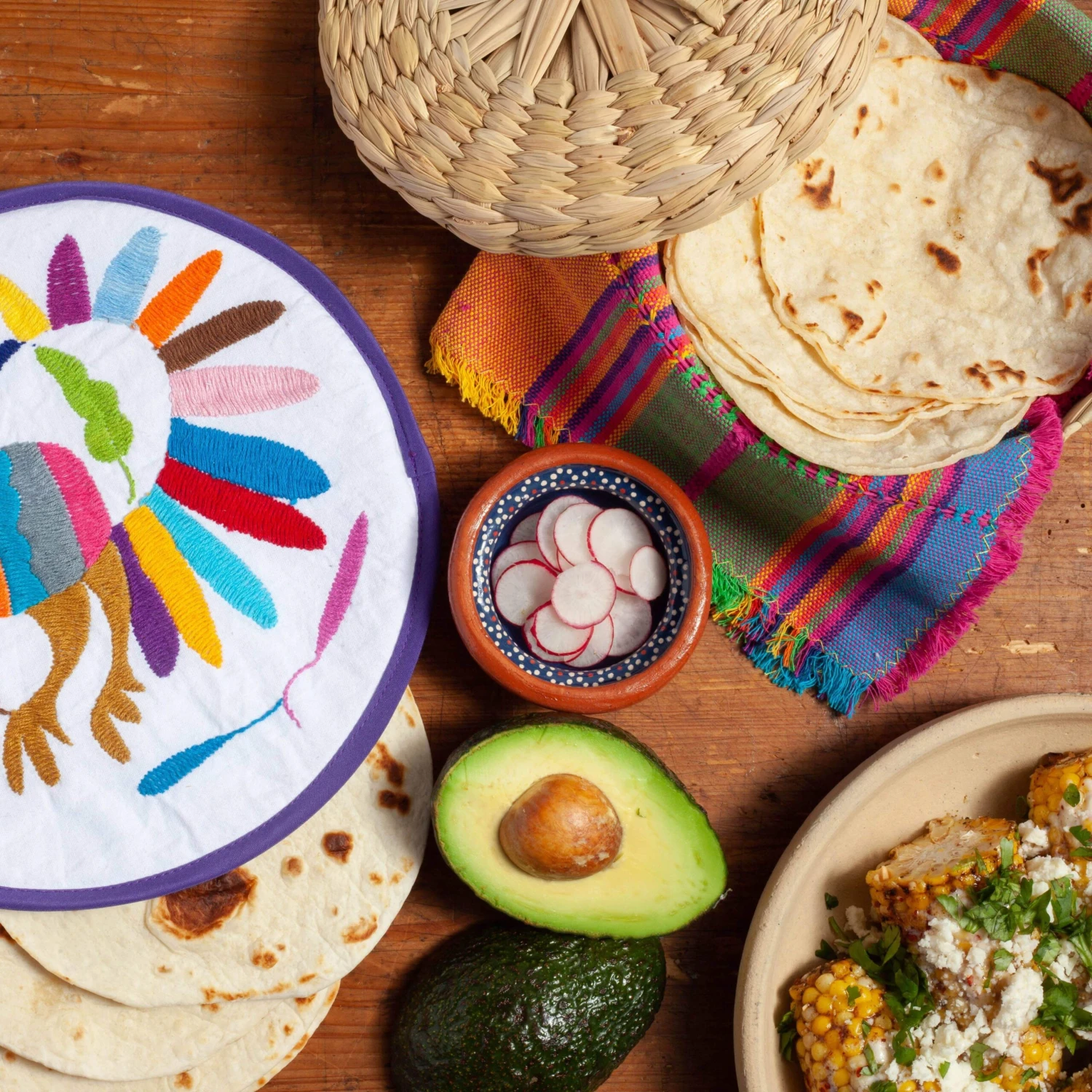 Traditional Mexican embroidery adorns this lovely fabric-style tortilla warmer. It’s made from 100% cotton, with inner batting to help insulate the tortillas to keep them flexible for filling tacos. We recommend microwaving the warmer itself before use, so your tortillas will keep warm for the duration of your meal.
