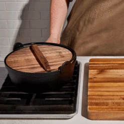 Here at Milk Street, weโre big proponents of cooking with cast iron because it heats evenly and retains that heatโwhich is why we designed our own pot for the ideal solution for soups and stews. Our Cast Iron Furusato is modeled after the traditional pot used for Japanese nabe (hot pot), but its durable cast-iron craftsmanship and stunning wooden lid carved from Japanese cedar make it a candidate for everyday use. Sturdy yet light enough to use often, itโs equipped with a swinging handle for easy maneuvering. Plus, unlike some furusato pots, this one is compatible with any stovetop, and it comes with a small silicone pot holder.