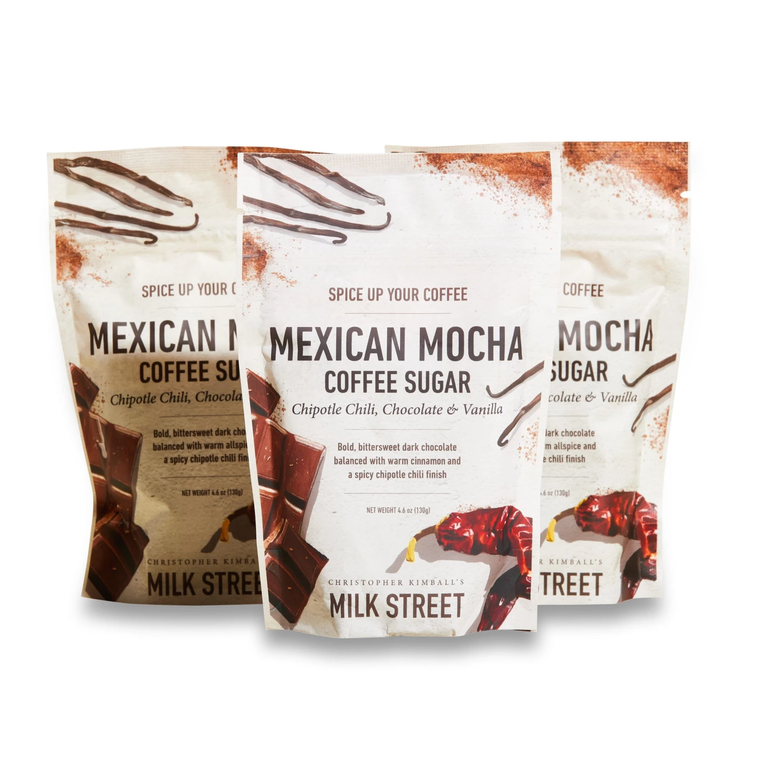 [/description-break] Ingredients [/title]Ingredients: Sugar, cocoa (processed with Alkali), cinnamon, natural flavor, dehydrated chili pepper (chipotle chili pepper, silicon dioxide, ethoxyquin)Allergens: Processed in a facility that processes nuts.[/accordion] Specifications [/title]Net Weight: 4.6 ounces [/accordions-break] This blend plays on the Oaxacan tradition of adding cinnamon and chili to freshly ground cacao beans for hot chocolate. [/banner_heading] Our director of digital content, Evan Petto, loves a light dusting of this coffee sugar on hot buttered toast. There are few sweets that can’t benefit from this perfect trinity of chocolate, chili and cinnamon. [/banner-text-break] Use Mexican Mocha Coffee Sugar in your morning cup of coffee or to ramp up hot cocoa. We love its balanced yet bold flavor on all manner of breakfast foods: Sprinkle it over oatmeal with some sliced bananas and walnuts, or dust a little on pancakes or cinnamon rolls. For desserts, add a spicy element atop brownies, or use the sugar to make a flavored whipped cream. We often sprinkle some Mexican Mocha Coffee Sugar on vanilla ice cream or rice pudding, for a twist on arroz con leche. [/how-to-use-break] Sugar isn’t just for sprinkling– try infusing your recipes with flavor by swapping out our spiced sugars for some or all of the sugar in everyday baking recipes, such as sweet biscuits and scones, pancakes and waffles, and pastry crusts.
