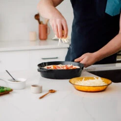 Care: Dishwasher-safe [/accordions-break]The lid of Milo by Kana’s 5.5-quart Dutch oven fits this skillet perfectly. Buy both and use the skillet with the lid to cover all of your cookware needs.[/banner_heading]
