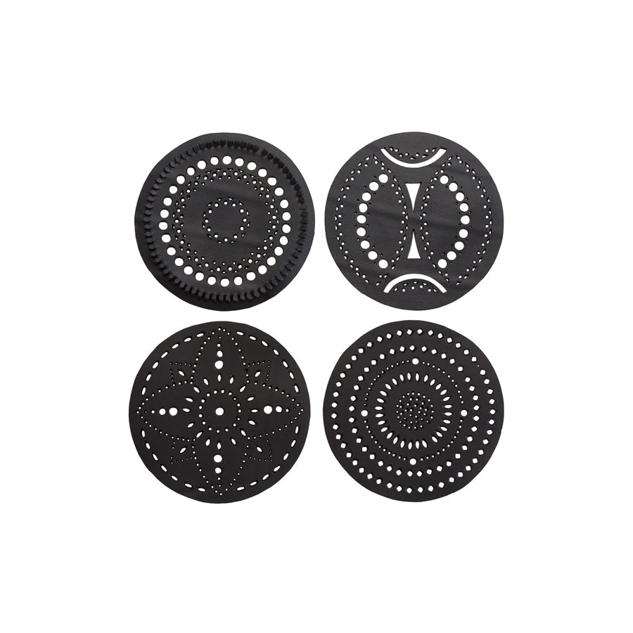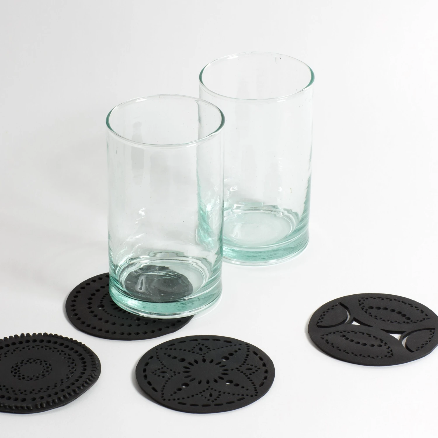 Made from recycled tires, this set of four handcut geometric coasters are heat resistant, easy to clean thanks to the rubber composition and one of a kind. Ethically produced in Indonesia by Paguro’s artisans, they are great as a unique housewarming gift or beautiful addition to your own kitchen.