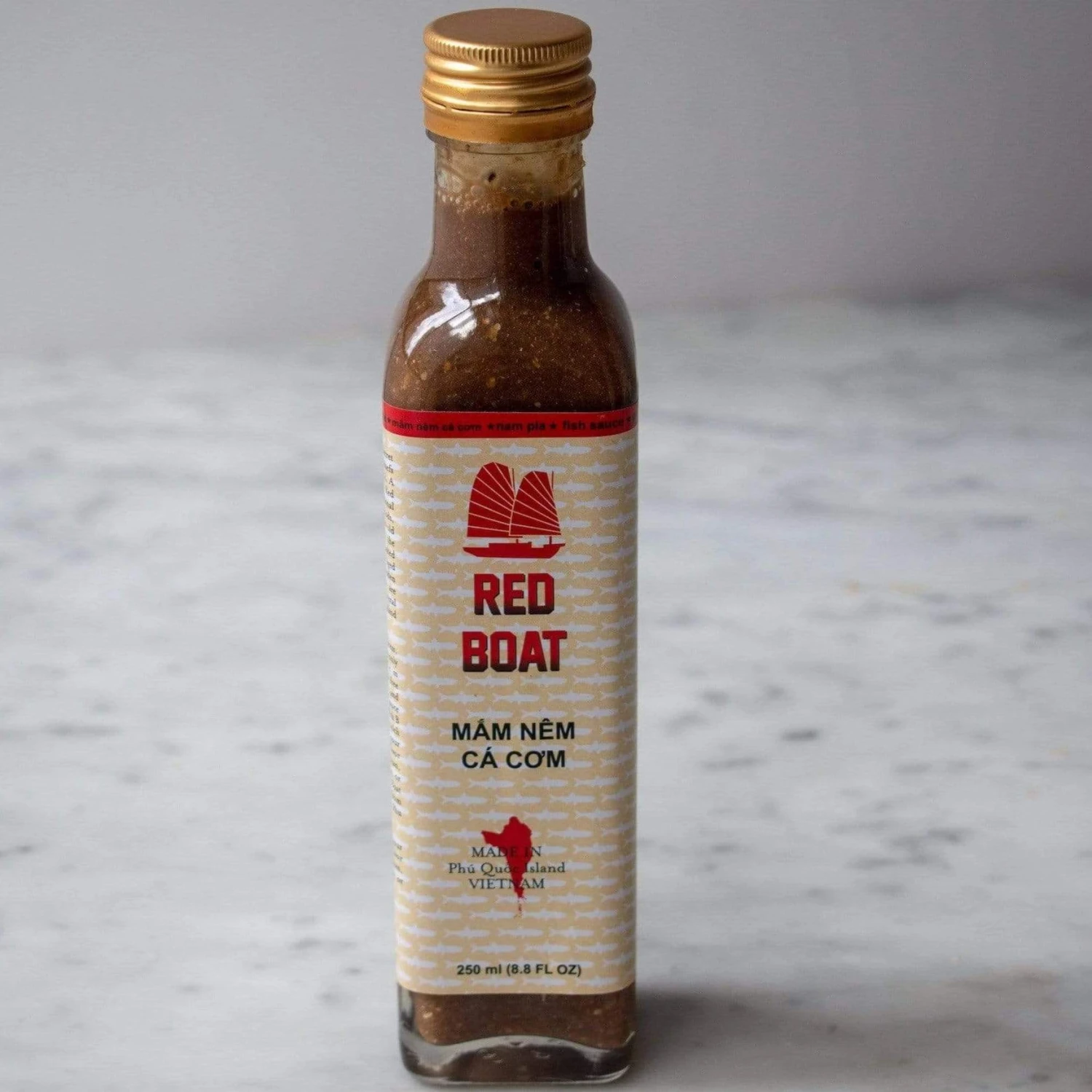 [/description-break] Ingredients [/title] Anchovy and sea saltAllergens: Gluten Free, no shellfish [/accordion] Specifications [/title] Net Volume: 8.8 fl. oz. Place of Origin: Vietnam [/accordion] [/accordions-break] Silicon Valley engineer Cuong Pham started his company in 2011 as an effort to recreate the bold flavors and intense aromas of his native Vietnam and make them available to home cooks in the States. [/banner_heading] With a commitment to transparency and sustainability, Red Boat has revitalized the fish sauce industry on Phú Quốc, once famous for its traditional fishing communities and fish sauce factories. [/banner-text-break] Use Mắm Nêm in small amounts as a substitute for anchovies, especially in recipes that call for mincing and melting down anchovies in sauce—try it for our Venetian-inspired Pasta with Golden Onions and Breadcrumbs or Pasta with Seared Cauliflower and Garlic. You can also use it to make a Caesar dressing or in Bagna Cauda with Charred Broccoli, a dip from the Piedmont region of Italy that is as good on the bittersweet broccoli as pulled out of the recipe and served with raw vegetables or smeared on crusty bread. [/how-to-use-break]