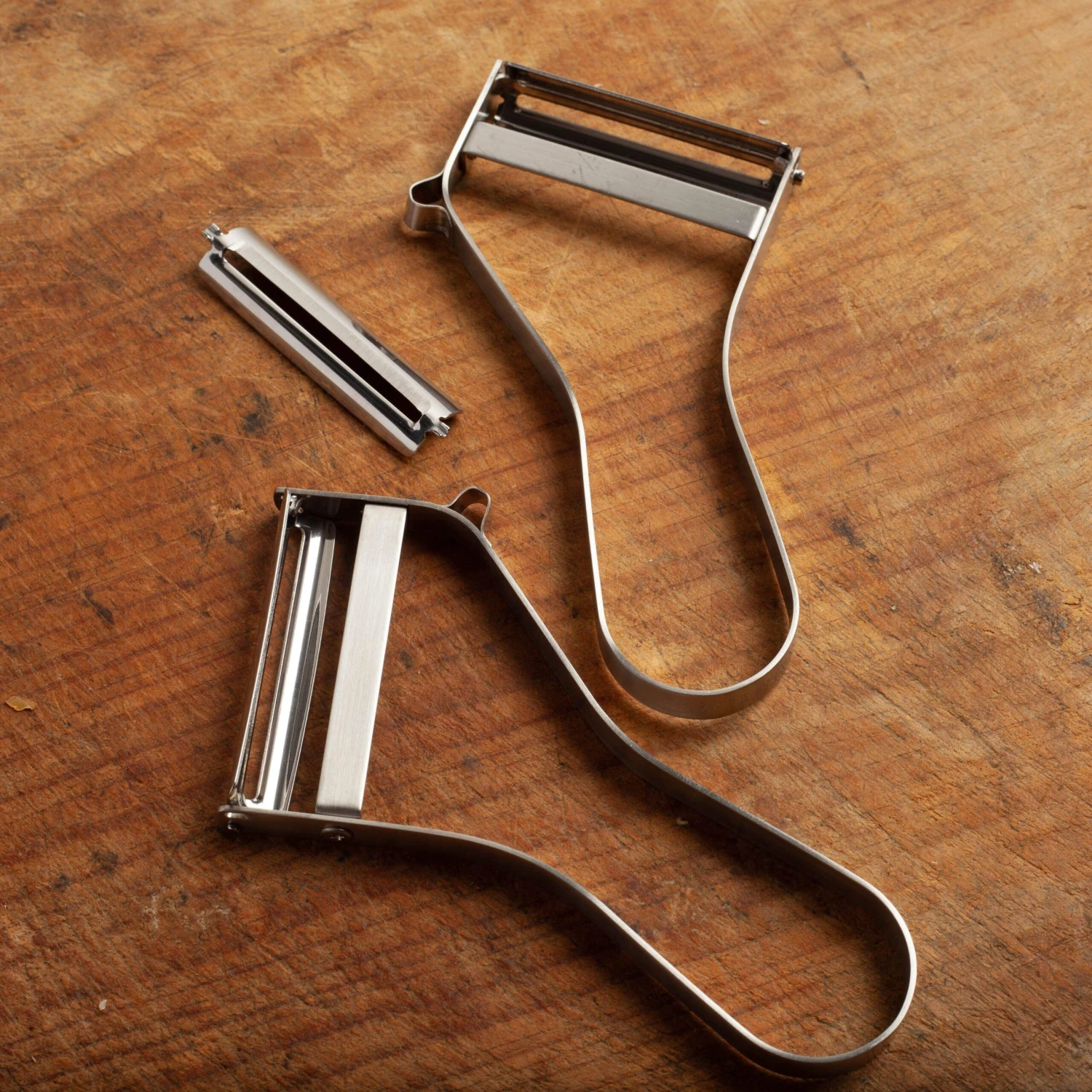 The blade is made from 440A stainless steel is normally used for high quality knives, so it stays sharp with daily use and slices through produce with the utmost ease, unlike other flimsy brands. It makes quick work of even the toughest, hard-skinned foods like butternut squash, breaking it down into paper-thin shavings. Find the Ever Peeler here. This is just the replacement blade.