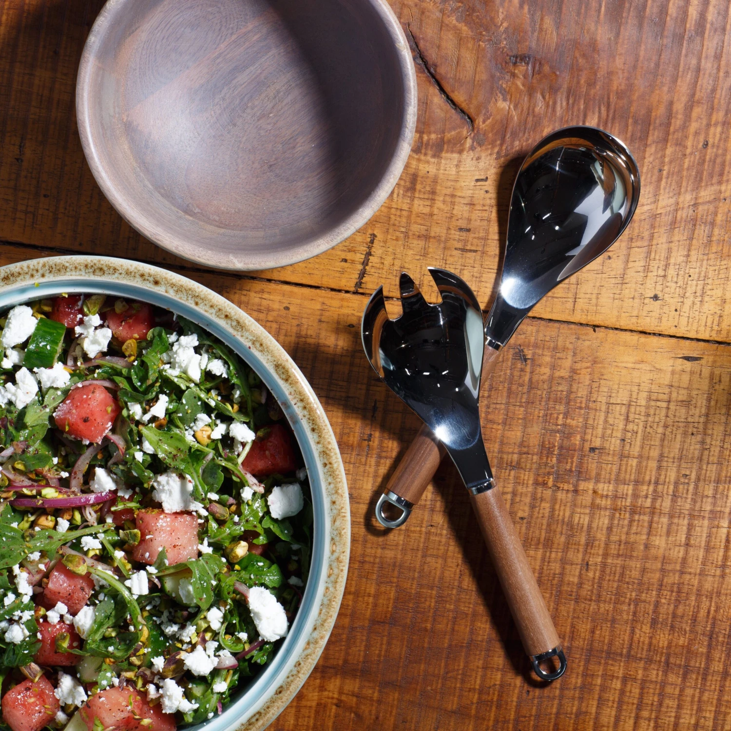 [/description-break] Specifications [/title]Materials: Stainless steel, walnut wood[/accordion] Care and Use [/title]Care: Not dishwasher-safe. [/accordions-break]Simple, durable and well designed: What’s not to love?[/banner_heading] Too often, serving utensils are fashioned from flimsy materials, have funky proportions and—worst of all—function poorly. That’s why we love these perfectly sized, beautifully fashioned utensils from Suncraft. Made in Japan, the tools’ stainless steel construction is smooth and durable, featuring a lustrous shine that won’t dull with washing. And the cylindrical handles constructed from rich walnut wood (known for its resistance to cracking) are comfortable to use. The elegant design is simple enough that it won’t clash with your flatware or dishes—so many serving utensils are over-designed and draw too much attention to themselves. The utensils also have reasonably short handles, so they require less drawer space for storage. Plus, they have holes at the end for easy hanging if you choose.[/banner-text-break]