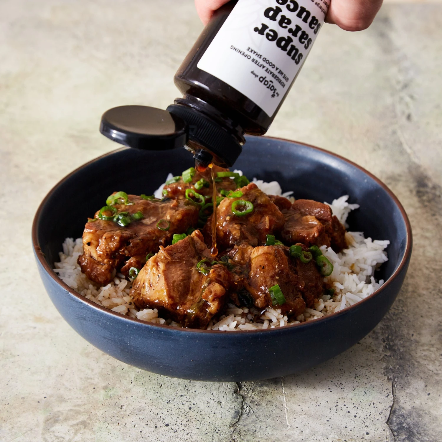Place of Origin: San Francisco, CA[/accordions-break] A simple foundation, with roots in the Filipino staple sauce sawasan.[/banner_heading] Known as a customizable dipping sauce found all over the islands, sawasan usually starts with soy sauce and vinegar. Sarap sauce expands on that base, leaning into a typical facet of Filipino cooking that balances savory and acidic flavors.[/banner-text-break] Mix into sauces, dressings, use as a marinade, coat noodles, like our Yakiudon with Pickled Ginger, tacos like our Mojo Pork Tacos, eggs or french fries. Or drizzle it over our Filipino Chicken Adobo with Coconut Broth or our Garlicky Cauliflower Rice with Mustard Greens and Scallions.[/how-to-use-break] Refrigerate after opening.
