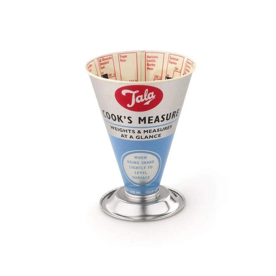 Place of Origin: Liverpool, England[/accordion] Care and Use [/title]Care: Hand-wash, dry immediately.[/accordions-break]These measure cups have over a century of history behind them. [/banner_heading]Tala has been producing baking and decorating equipment since 1899 in England. Their small and highly skilled team has worked with the same machinery since the 1920s to supply cooks and bakers across the world. [/banner-text-break]Use to measure out wet and dry ingredients accurately, as well as level out dry ingredients by shaking.[/how-to-use-break]Hand wash recommended. Measure liquids only for immediate use, cup is not watertight.
