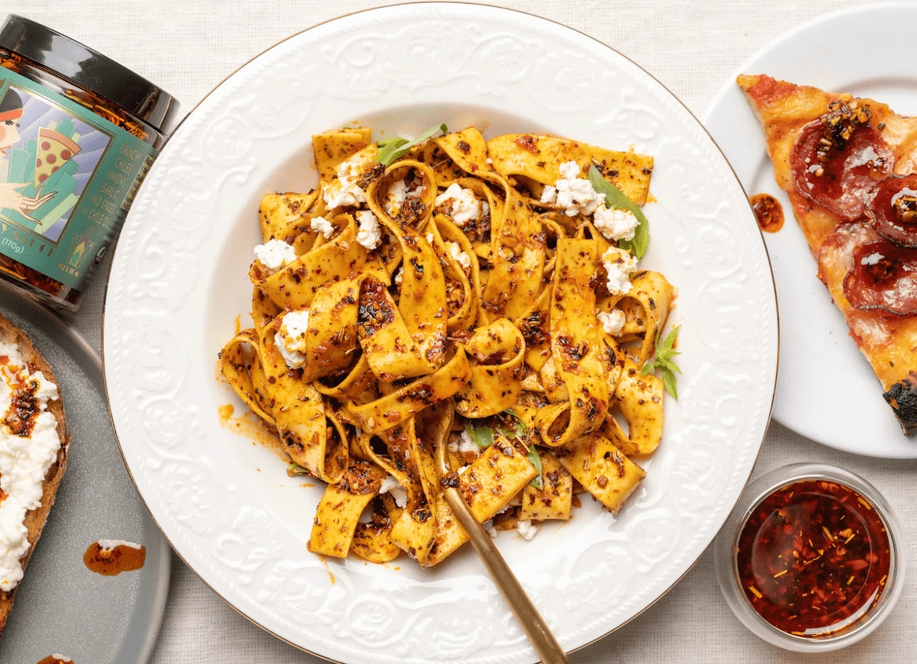 Packing a 7 out of 10 heat level, this unique Pizza Chili Crunch from the Flavor Society adds a fiery, crunchy finish to any dish. Compared to the Flavor Society’s regular chili crisp, this spicy version has a more noticeable heat but still won’t burn your palate. Taking inspiration from Italian flavors, it stars a blend of chilies, fennel seeds, Italian herbs, fried onion and garlic, all of which get an umami boost from silky chili-garlic oil and mushroom powder. It’s a perfect partner for pizza, but we also love it on vegetables, salads, pasta, breads (like focaccia!), sandwiches or spooned over fish. Mix it into mayo or lemon juice and you may have a favorite new dip for French fries and lobster. The Flavor Society sources premium, non-GMO ingredients grown in the United States, like their organic sunflower seeds—which add nutty flavor and extra crunch—California garlic, onions grown in Washington and Idaho and dried chilies from Las Cruces, New Mexico.