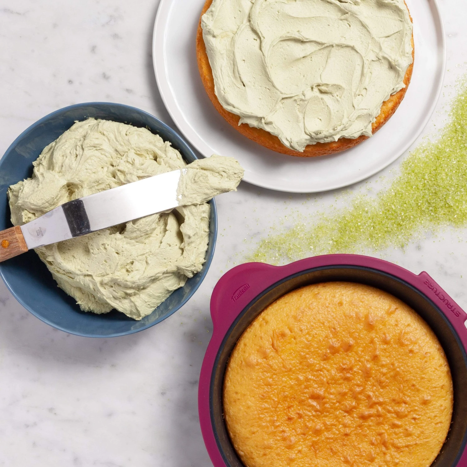 This cake pan is our top pick for brownies and birthday cakes, as the silicone prevents food from sticking and eliminates the need for greasing the pan. Each Trudeau pan is made from silicone with an internal steel frame around to top rim for added structure, so it wonโt flop around like other silicone bakeware. And silicone is generally known for being easy to clean and for providing exceptionally even browning. We love how even delicate cakes slide out fairly easily with some slight flexing of the pan, though a light layer of butter might be welcome for especially delicate desserts. Note: Silicone does heat differently than glass or metal. Your bake time may be a few minutes longer than the recipe suggests.