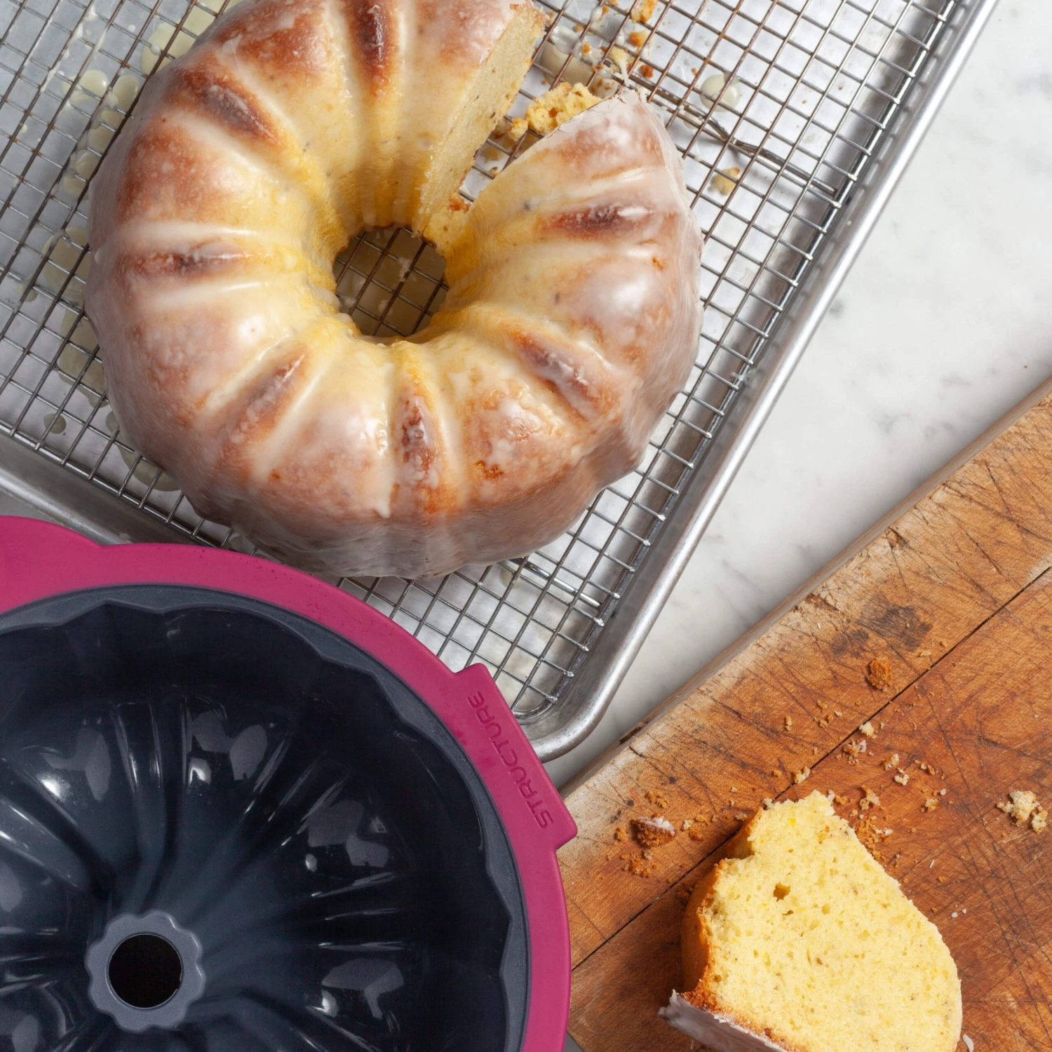 This fluted cake pan is our top pick for bundt cakes and more, as the silicone prevents food from sticking and eliminates the need for greasing the pan. Each Trudeau pan is made from silicone with an internal steel frame around the top rim for added structure, so it won’t flop around like other silicone bakeware. And silicone is generally known for being easy to clean and for providing exceptionally even browning. While bundt cakes typically get stuck in the pan and tear due to their complex shape (causing some serious heartache), this pan cuts down on the chances of that 10-fold—though, you can use a light layer of butter still if you’d like. Note: Silicone does heat differently than glass or metal. Your bake time may be a few minutes longer than the recipe suggests.
