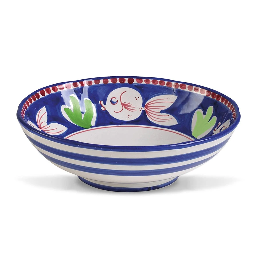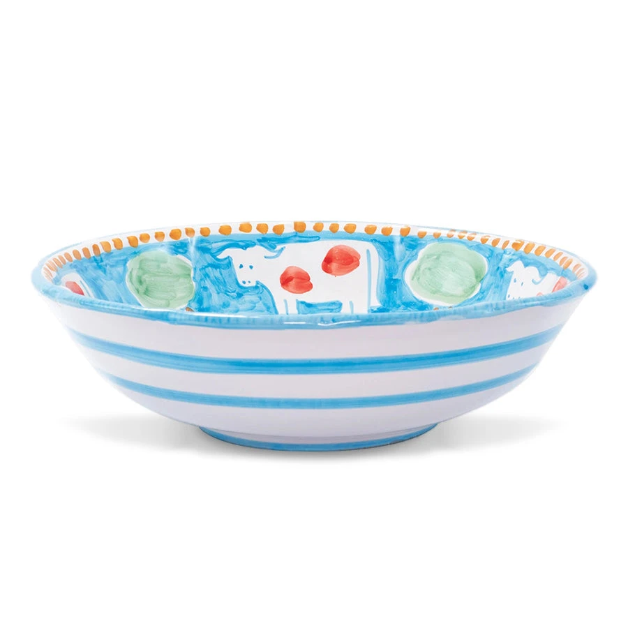 With its wide basin and gently sloping sides, this hand-painted ceramic serving bowl from Vietri’s flagship Campagna collection is designed for serving pasta, soup, salad or a large shareable dish; you’ll want to dish up dinner quickly to show off the bowl’s painted interior. Pair it with Vietri’s salad plates or pasta bowls to complete your pasta night set. Inspired by pastoral southern Italy, every piece features a playful, hand-rendered painting of a horse, rooster, cow, pig, fish or bird, plus vibrant wildflowers or bright coastal algae native to the area. Terracotta, locally sourced from the Amalfi Coast, has been used for Italian ceramics for centuries: the first pieces were dried in the sun. But today, Vietri’s artisans make the Campagna line the same way ceramics have been made for 500 years, carefully firing each piece in a kiln to set its shape and unique colors.