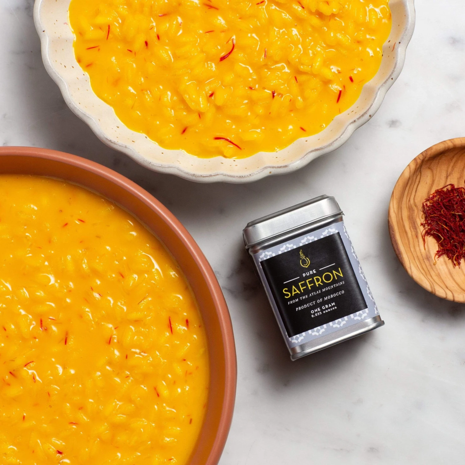 A few threads can go a long way of this incredible organic saffron harvested from the Moroccan city of Taliouine, high in the country’s Atlas Mountains. While most saffron is cultivated in the Middle-East, with much of the world’s production coming from Iran, but there’s something so special about Moroccan saffron. It tastes of hay, honey and hibiscus flower, with a lovely aroma that hits you the second you open the jar. Inferior saffron threads are often dry and brittle and crushed to bits by the time you crack open the jar (a sign of lackin freshness) but these are fully intact and look like delicate threads of rich crimson. It’s even placed judiciously in the tin in such a way that prevents breakage. Plus, it’s pure saffron with no fillers—some less quality versions are bulked up with dyed corn silks. Moroccan saffron is some of the most fragrant available—a sweet aroma of honey with a pleasant bitterness. It’s remarkably potent, rich, heady and unmistakably saffron.