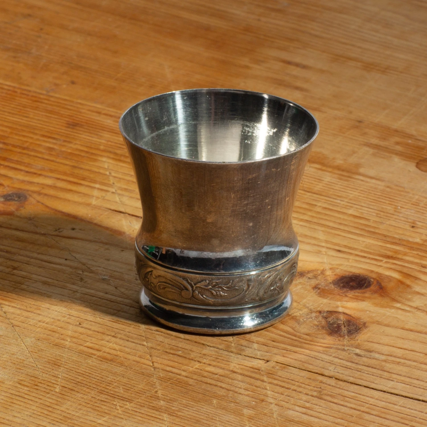 Capacity: Approximately 1.5 ounces[/accordion] Care and Use [/title] Care: Hand-wash. Use silver polish to remove any tarnish/build up.[/accordions-break][/how-to-use-break]Hand-wash. Use silver polish to remove any tarnish/build up.Marks of time and use are consistent with a product that is of this age. Please note each product is one of a kindโitems received may vary from those pictured